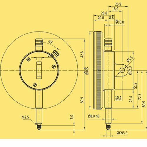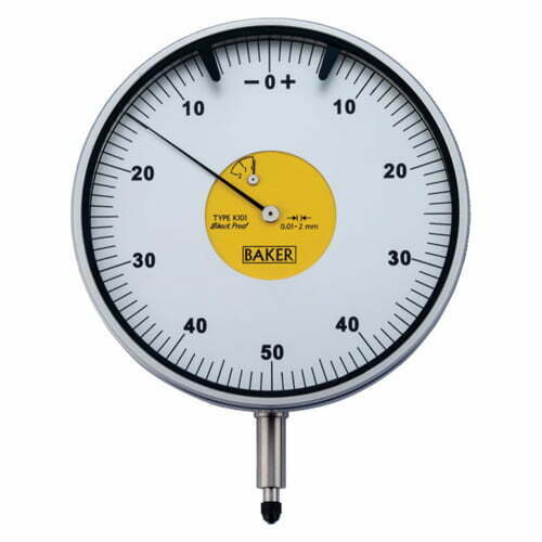 MODEL 105 – K101 Mechanical LARGE Diameter plunger-type Dial gauge for easy reading, Hardened stem for free clamping, Tungsten carbide ball anvil, Rigid brass case, Strong & smooth metal bezel, Spindle made of stainless steel.